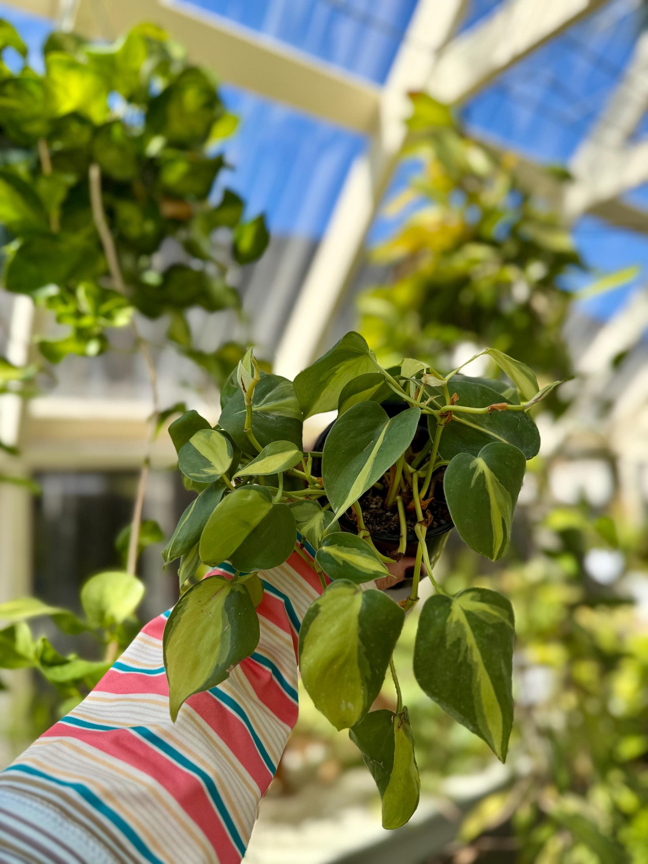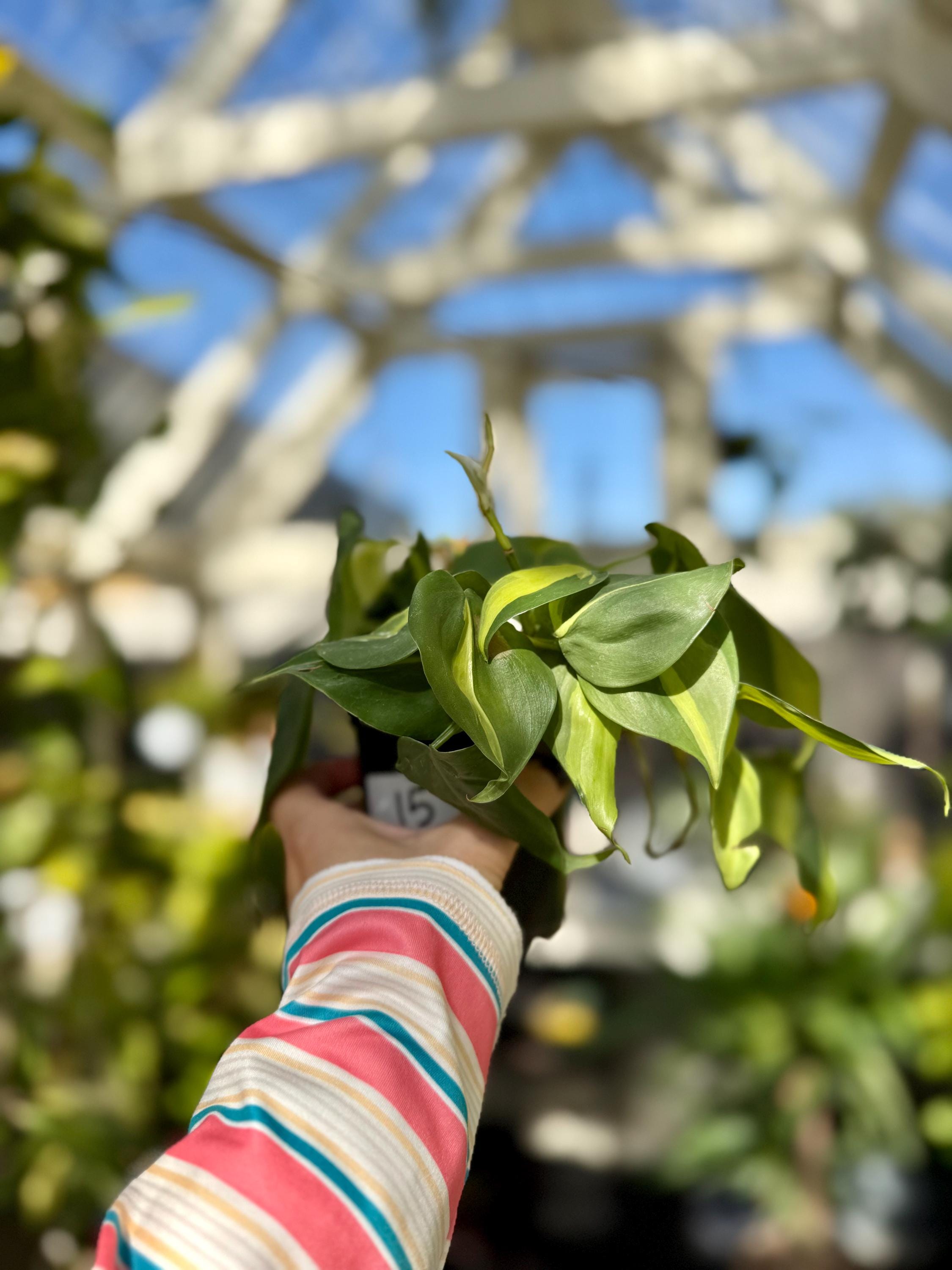 This common epyphytic houseplant is native to coastal Brazil and grows in a vine-like or climbing fashion. It wields heart-shaped leaves and is a great addition to any office or household as it is very easy to care for, requiring minimal waterings and only needing low to medium indirect sunlight. This particular, "Brasil" variety, will have segment on each leaf separating its yellow and green color.