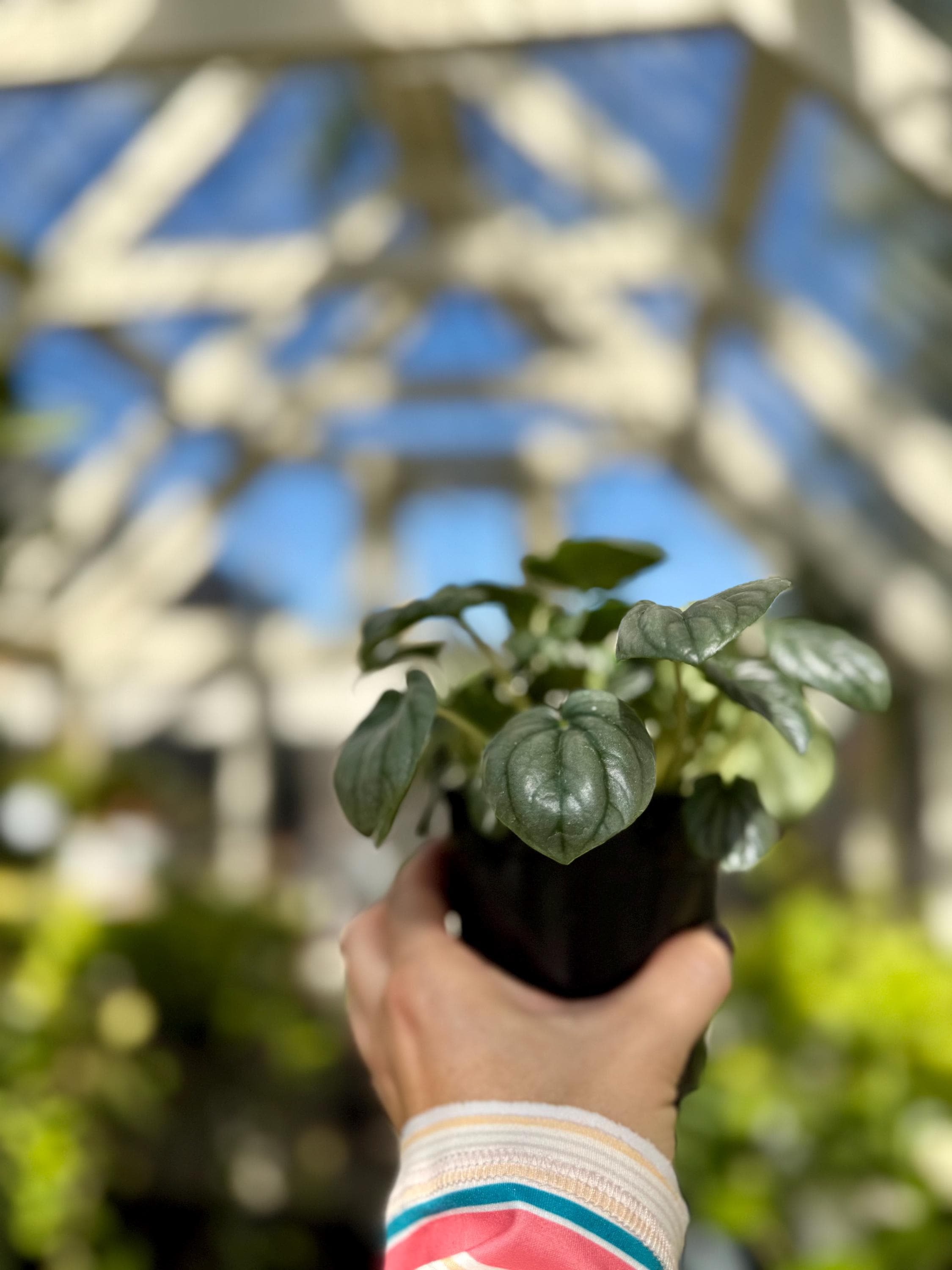 Peperomia Frost gets it's name from it's icy-looking rounded leaves. Each leaf features a blue-green shade which sparkles in the sun. This peperomia behaves similar to a succulent. Does well with bright light and needs a low amount of water to thrive. Pet safe!