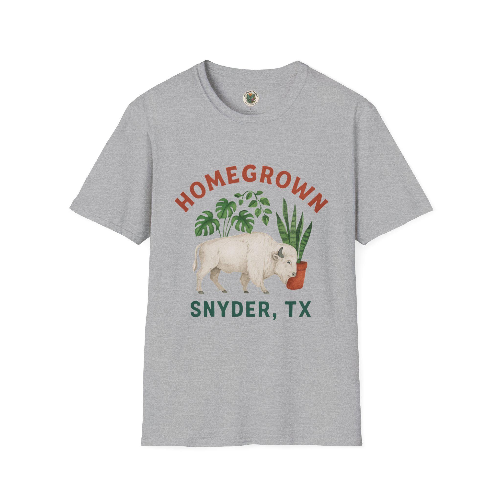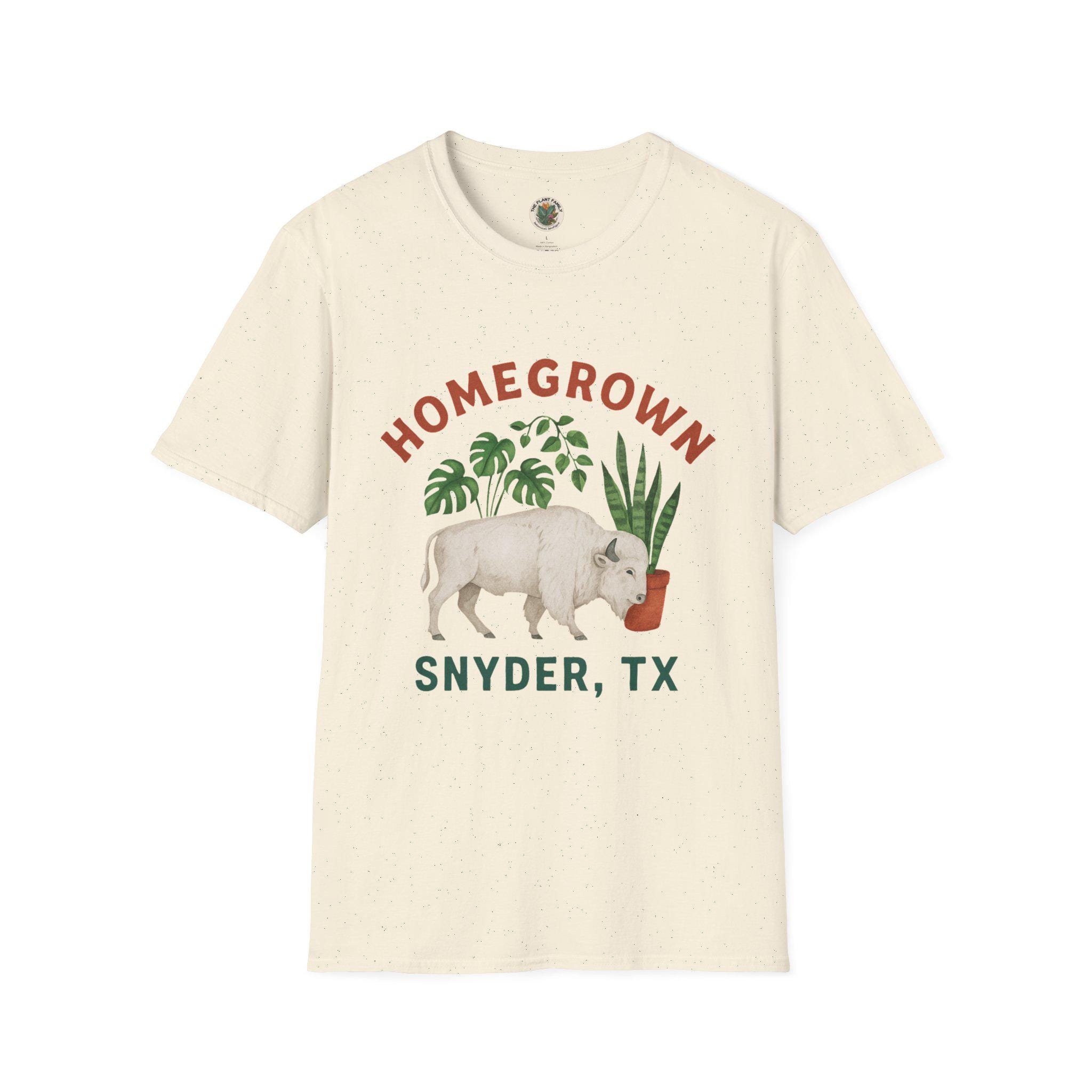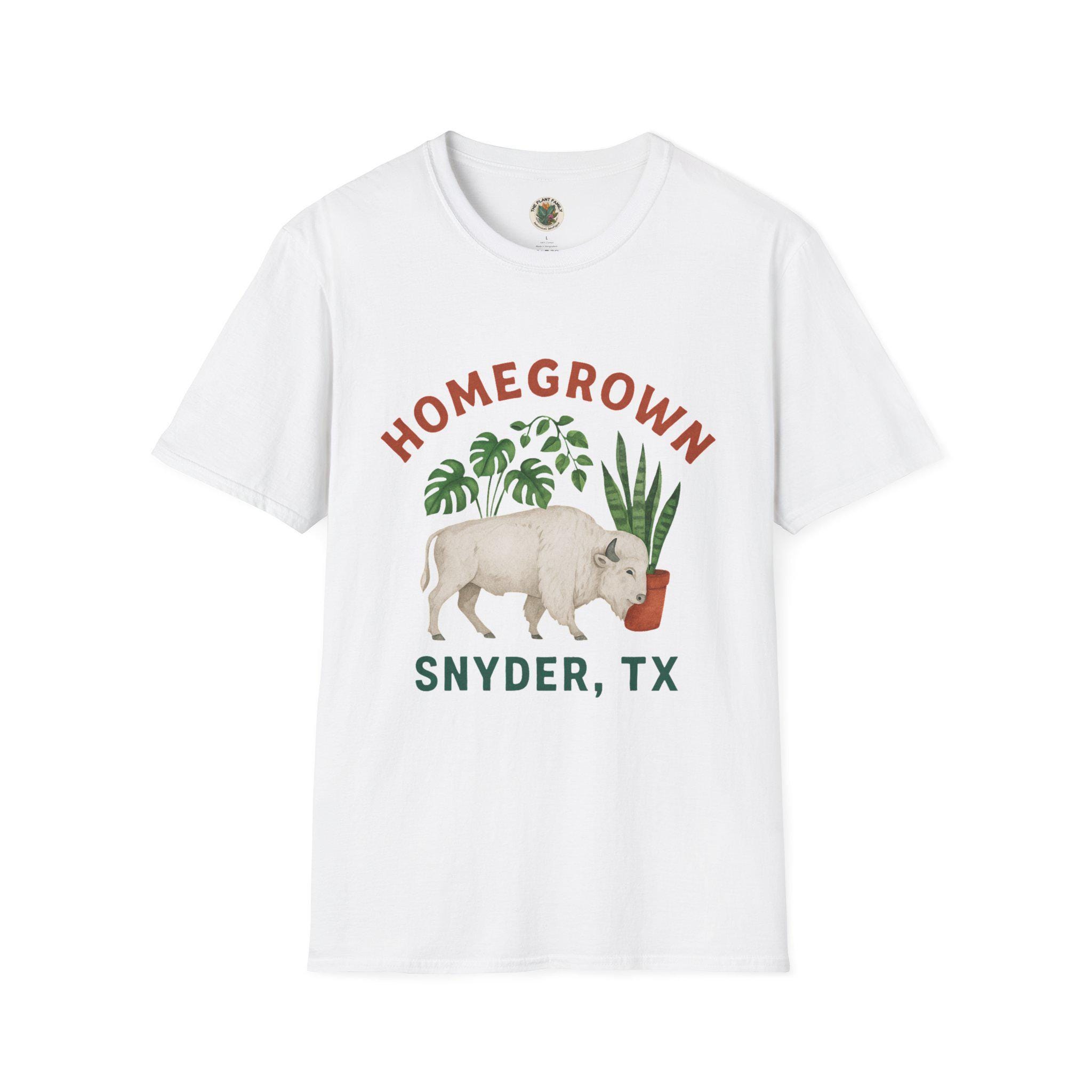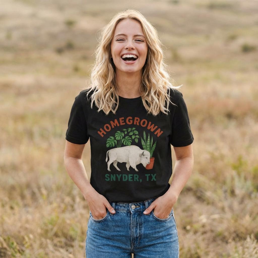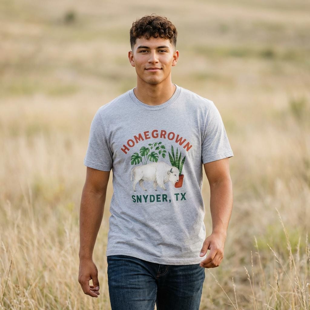 Celebrate where you’re rooted 🌿 This Homegrown Snyder, TX graphic tee is perfect for plant lovers, proud locals, and anyone who believes in blooming where they’re planted. Featuring a bold West Texas buffalo surrounded by houseplants, this design blends small-town pride with plant lover energy. Whether you're tending your greenhouse, visiting your favorite local plant shop, or just showing love for your hometown, this tee is a comfortable everyday staple with a little botanical personality. It also makes a thoughtful gift for plant moms, gardeners, West Texas natives, or anyone who calls Snyder home. ✨ Details • Soft, breathable cotton blend • Classic unisex fit • Durable printed graphic design • Short sleeve everyday comfort • Perfect for casual wear, plant shopping, or gifting 🌿 Perfect For • Plant lovers & plant moms • Snyder, Texas locals • West Texas pride • Gardeners & greenhouse owners • Unique local gifts