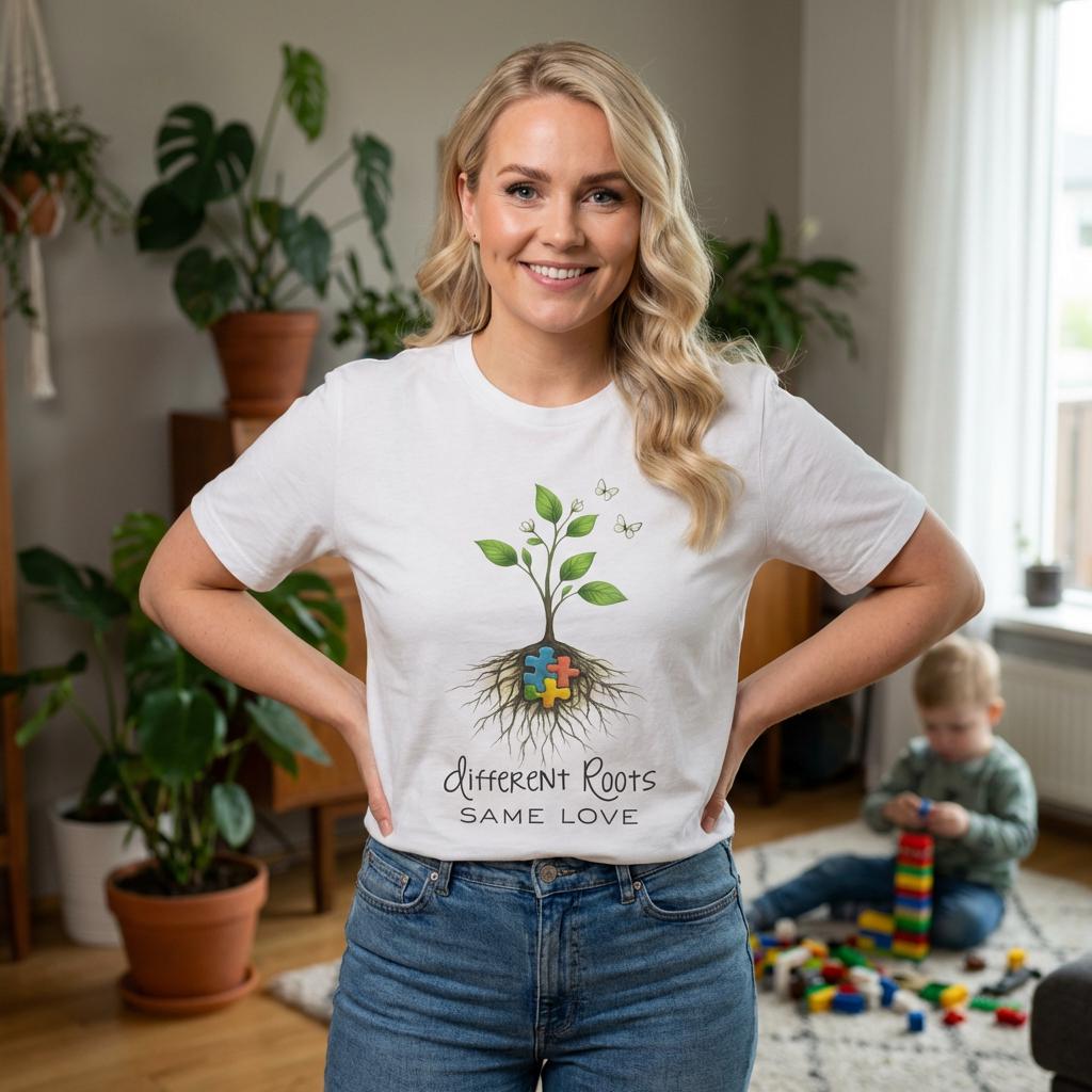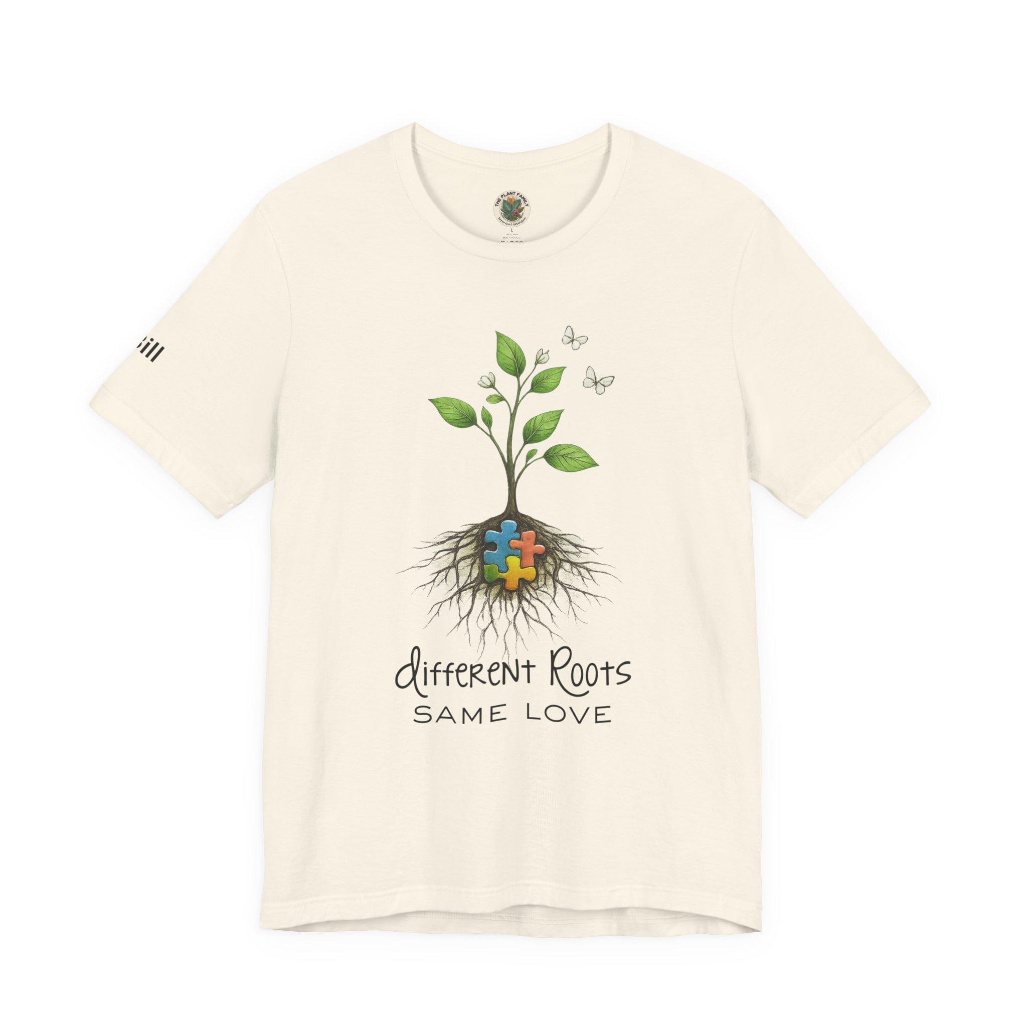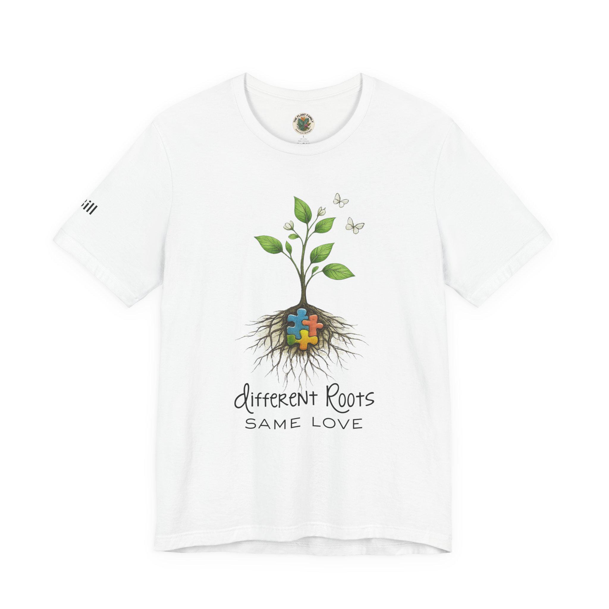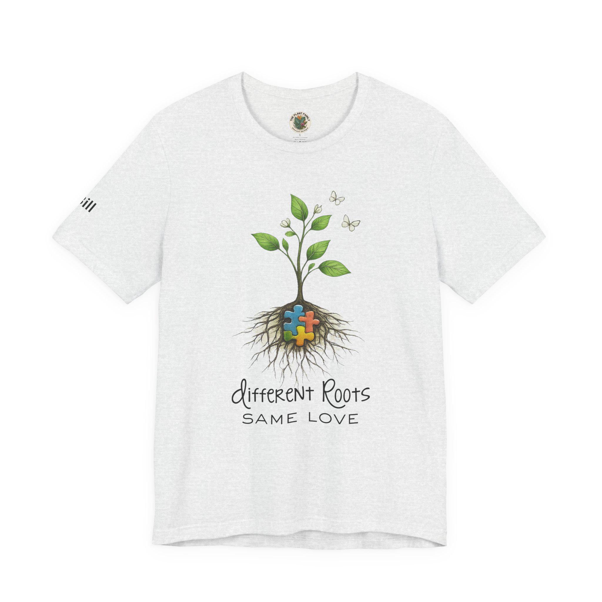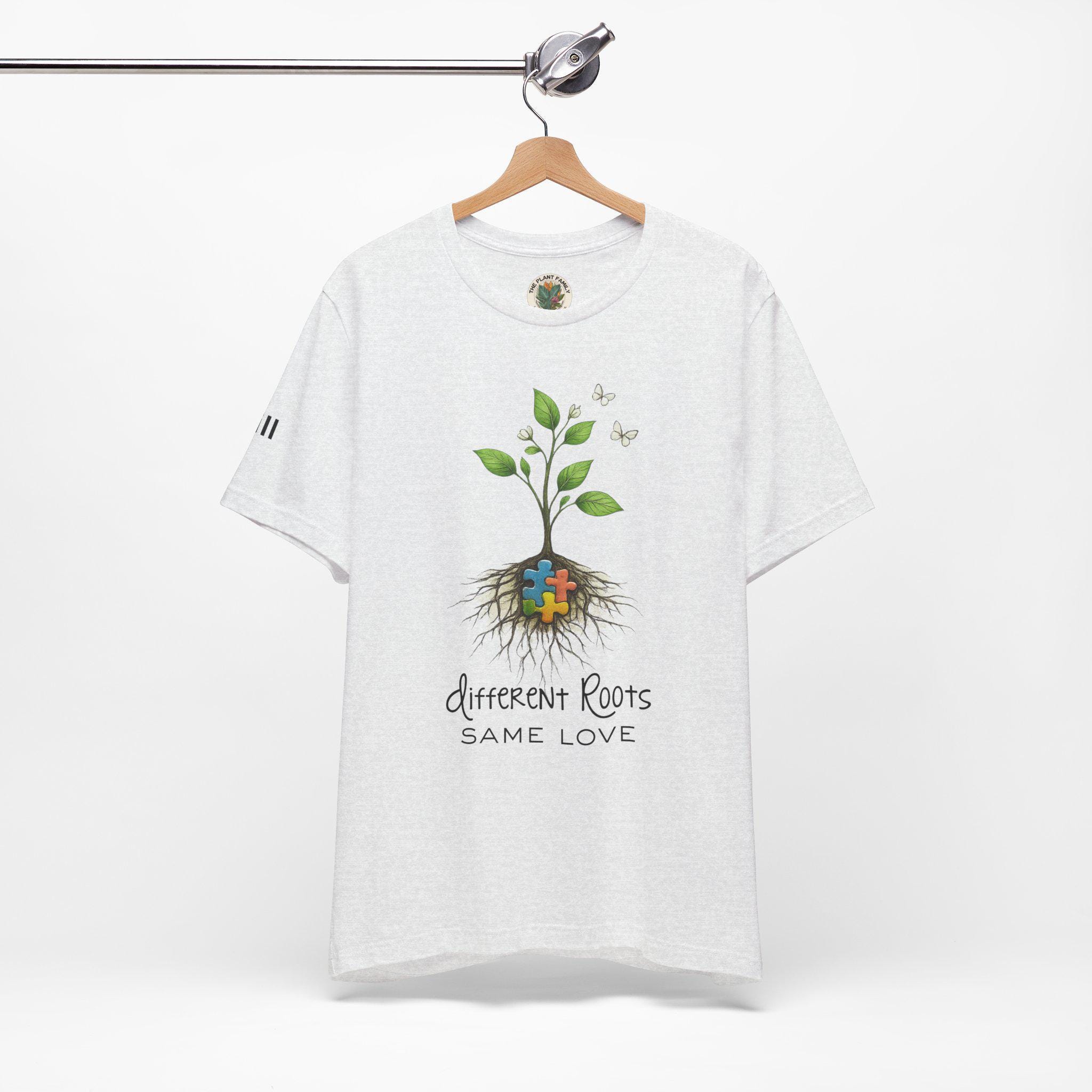 Celebrate love, growth, and the beauty of every unique journey with this Different Roots, Same Love autism awareness shirt 🌿