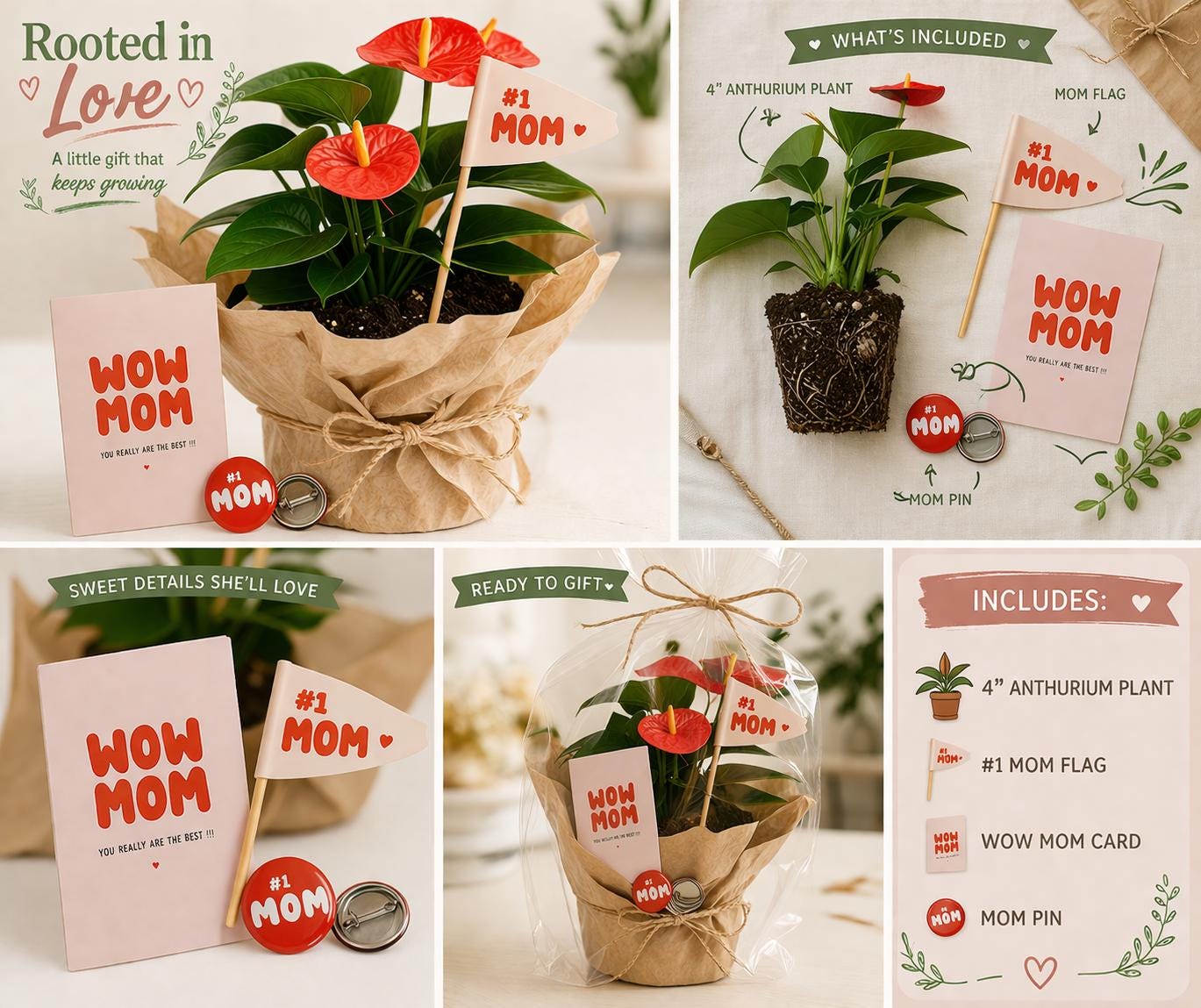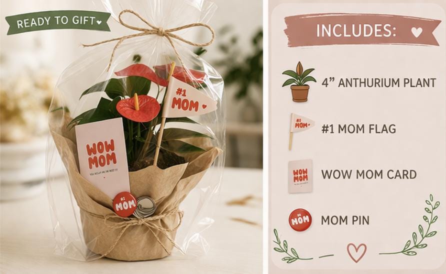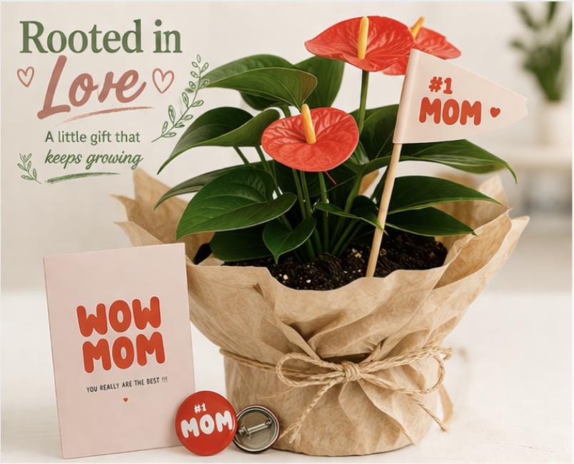 Rooted In Love - Mother's Day Live Plant Gift Bundle - Anthurium- Pre Order